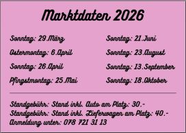 Anmelden ausschliesslich per Telefon möglich, bis einen Tag vor dem Markt.